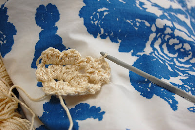 Round 12. 3dc then 1slst into the 2ch bridge. (1 cluster).