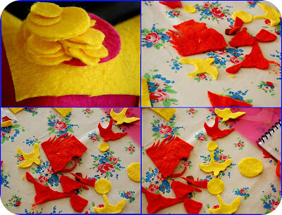 Step 5. Cut out a little piece of felt (see above) and trace around the base of the stalk with a pen. Cut out the circle and sew to the base of the stalk. Leave a little gap to finish stuffing the bottom and then stitch shut. That's the stalk finished! I think you have done a terrific job so tell yourself a hearty "Well done".