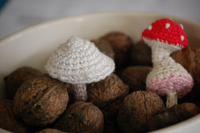 Oh yes, since our Autumnal trip to Eastwoodhill Arboretum, I have been thinking a lot about fungi and their shapes and of course... what starts off as a thought at the moment often ends up on a hook.