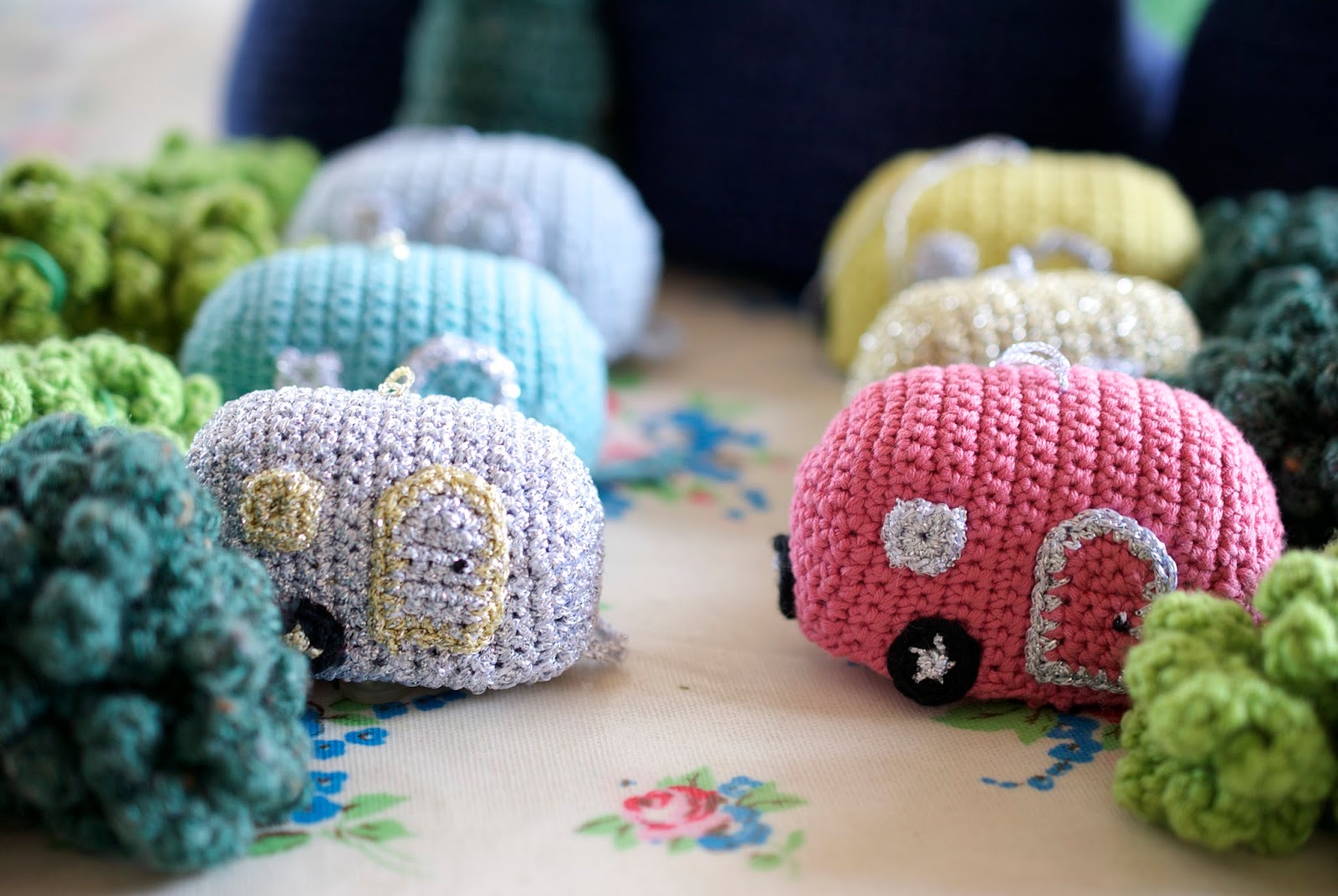 With Christmas creeping up (at least in the world of handmade as there is only so much 'making' time until December), I thought it would be fun to add a festive project to the Lakeside Cabin from "Let's Go Camping! Crochet Your Own Adventure". A wreath for the door. Of course, once I made that, the caravan (also in the book) looked bereft. Now, I can't stop making mini decorations....