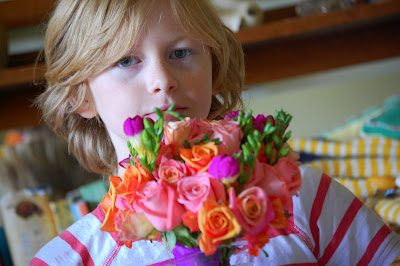 Today being a quiet Sunday means that there will hopefully be time for this loss of self though creativity as the boys are occupied with birthday parties and watching the street car racing with Jonno. Summer shorts need to be made, particularly before they begin to protest about wearing clothes with little gnomes on them. And perhaps a new skirt for myself if there is time. And joining lots of knitted flowers together into bracelets and brooches and inner songs.