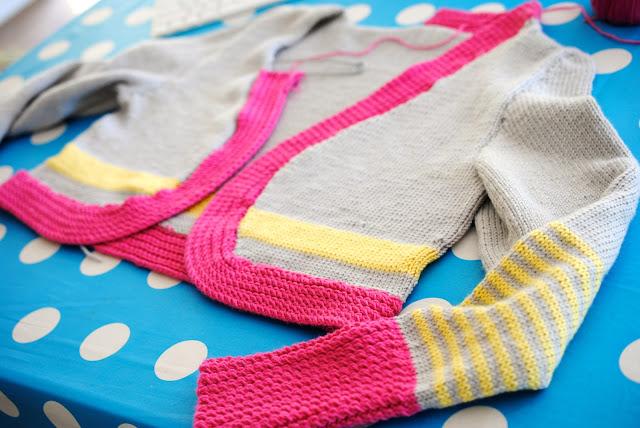 I have also started my new jumper, it is knitting up so beautifully and is so soft that I have to keep rubbing it against my cheek. The grey wool is the cashmerino by Sublime which I bought on sale a year ago. The yellow and pink are bamboo merino by Sirdar "Baby Bamboo", a range that I am mad on for their wonderful colours.