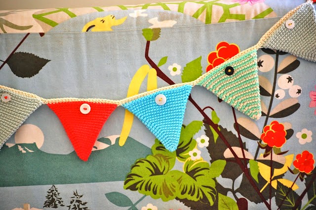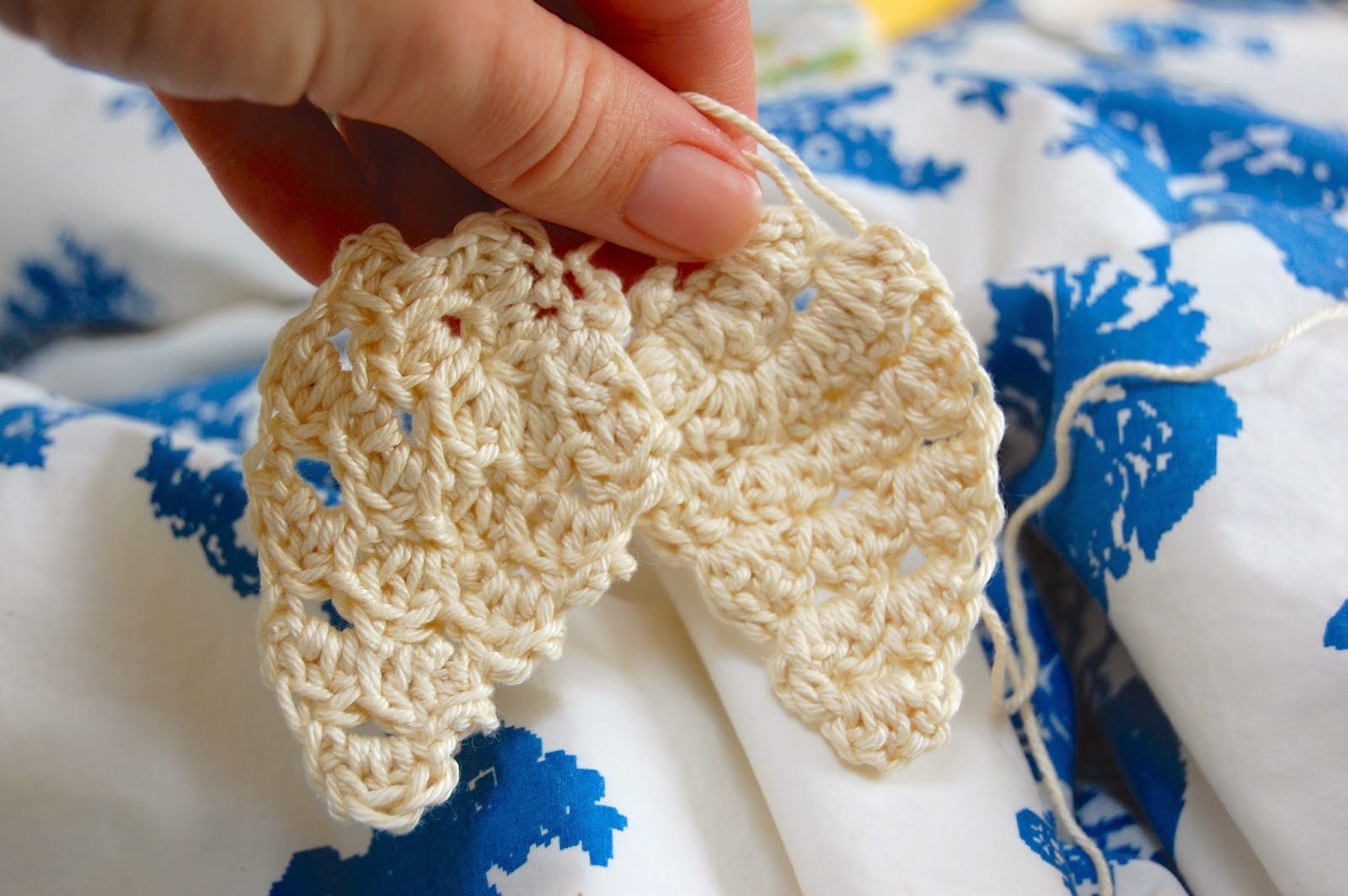 Bind off leaving a long tail then stitch the 7ch tail across the colour change on the door. Stitch on bead for a door handle and bind off the tail.